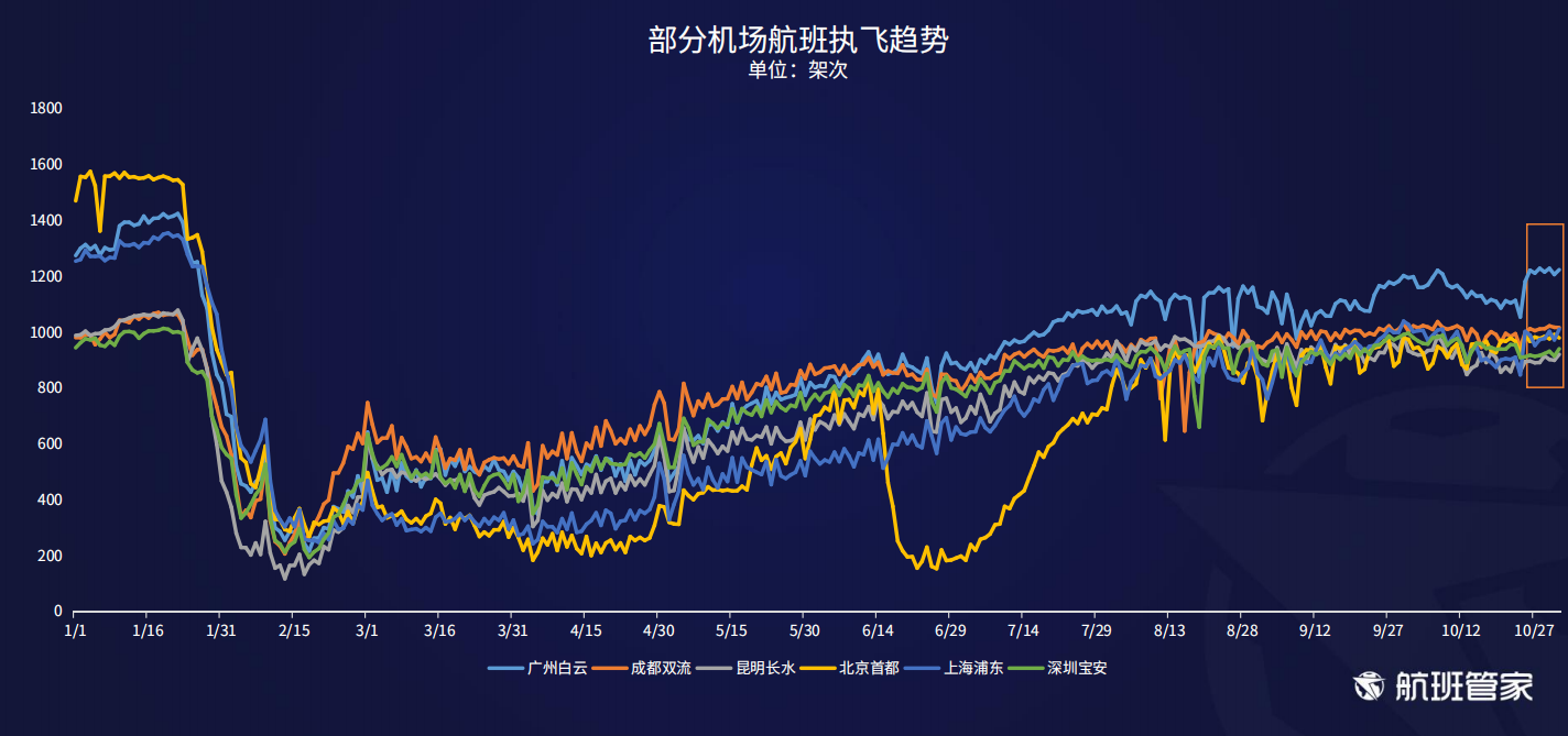 日前,航班管家发布了10.26-11.01期间的民航运行周报,从历史一周民航运行趋势、航司运行趋势、机场、货运航班等维度解读民航市场发展趋势。以下为周报内容: