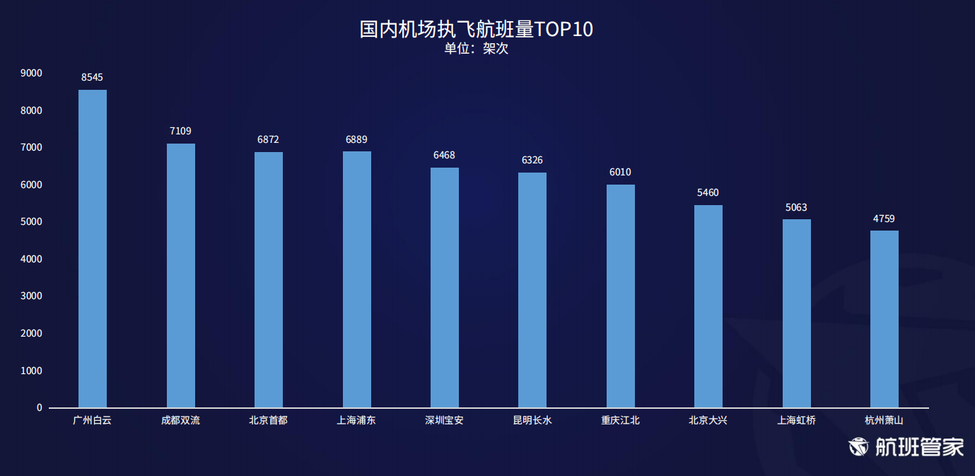 5、航班量:为实际执飞客运航班,不包括共享、经停,不包括取消航班