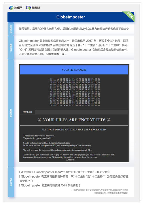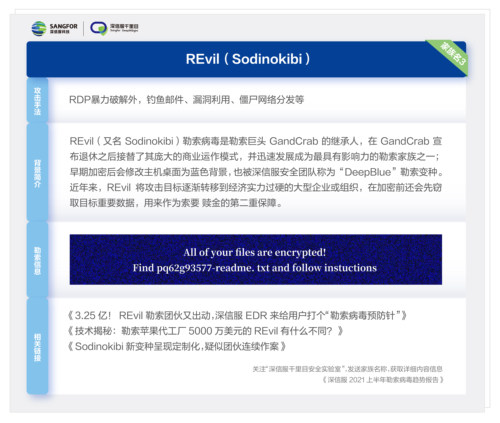 根据深信服最新颁布的《2021上半年勒索病毒趋势报告》, 可以从「4大观察维度+3大攻击演变」窥探当前勒索病毒的野蛮生长情况:数据显示,勒索病毒加速进化,攻击手法持续迭代,甚至对特定的行业、地域具有明显的针对性。
