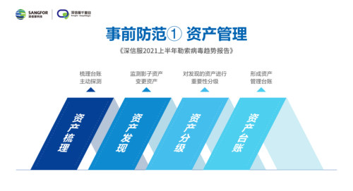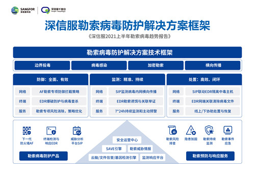 深信服基于多年来为1000+各行业用户提供有效的勒索病毒防护,在实践中沉淀出系统性解决方案。面对勒索病毒新的变化趋势,深信服推出「4+7+1勒索病毒防治药方」,其中全新升级的勒索病毒防护解决方案,将帮助用户更有效应对高级勒索威胁。