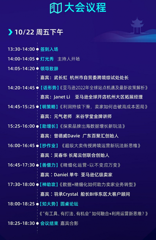 本次大会特邀亚马逊全球开店杭州大区拓展经理Janet Li ,为卖家们全面讲述2022亚马逊全球站点机遇及最新政策解读;同时邀请行业亿级大卖阵容分享本地化产业转型经验及精细化运营干货,助力提升利润,并提供相关的解决方案。帮助卖家在充满不确定性的外部环境下,更好地拓展亚马逊业务,“出海远航”!