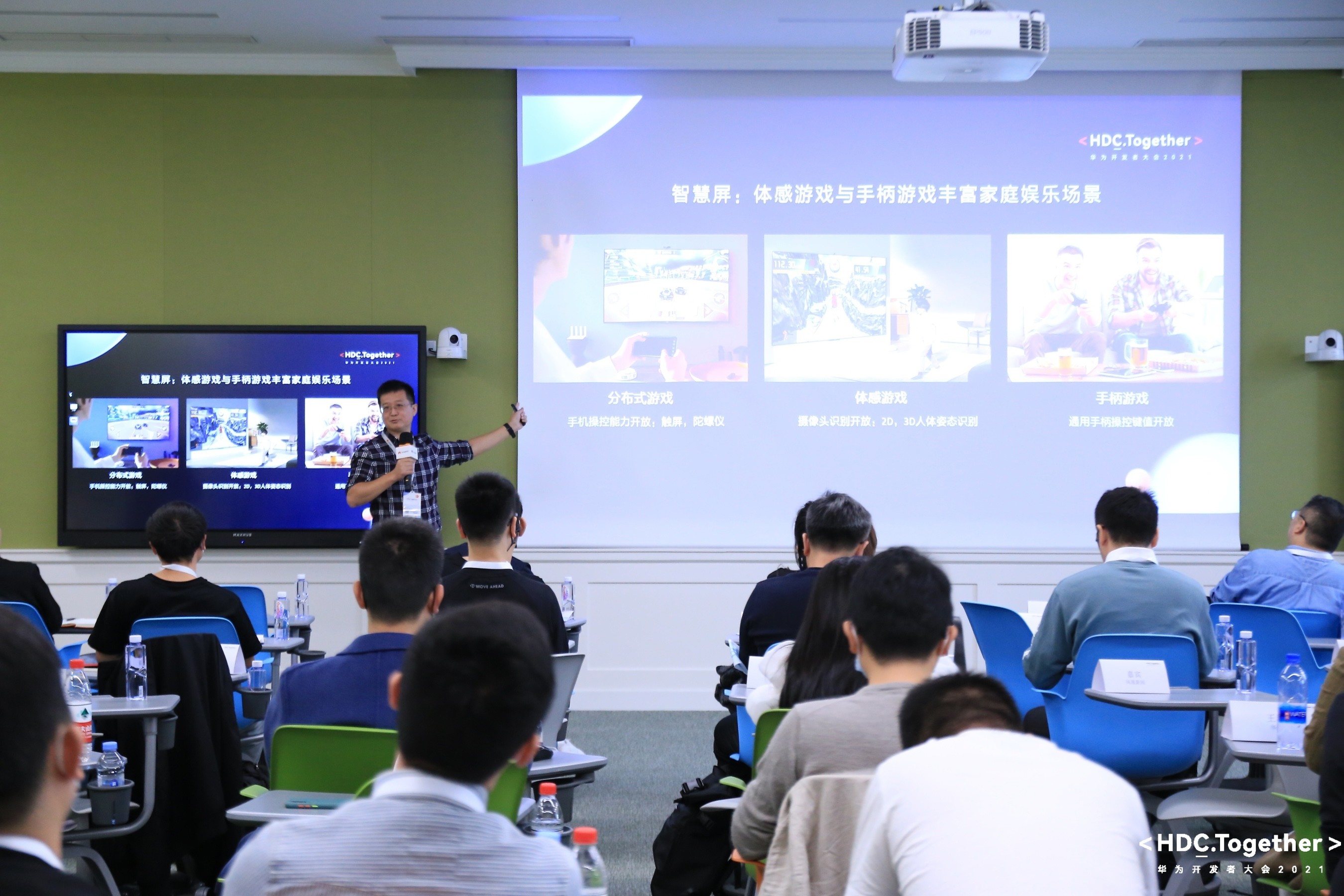 再如,智慧屏提供的分布式游戏,可以通过分布式能力直接调起手机的陀螺仪,让手机秒变大屏的游戏手柄。手机与大屏之间数据量的交互非常小,根据华为实验室数据,时延可低至30ms,几乎不会有感知。这种体验显然是游戏玩家梦寐以求的,无疑是把游戏机的体验搬上了智慧屏,因此越来越多的游戏开发者进行相应的开发来支持这个生态跟体系,越来越多的游戏可以在大屏上获得更好体验,这显然也是未来智慧生活的大势所趋。