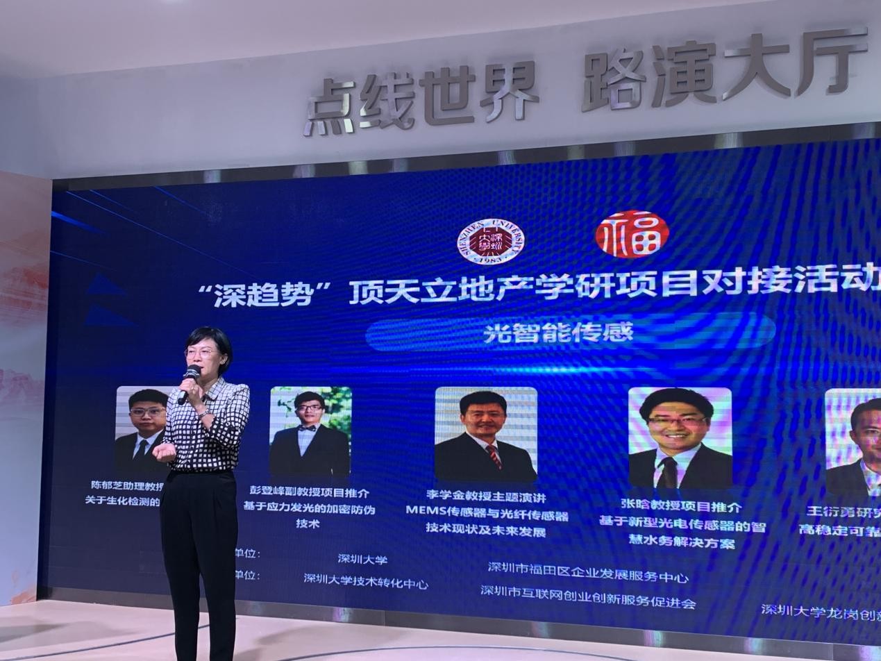 10月22日,“深趋势”顶天立地产学研项目对接活动第三十期——光智能传感技术对接会在福田点线世界成功举办。活动由深圳大学、福田区企业发展服务中心主办,深圳大学技术转化中心、深圳市互联网创业创新服务促进会、深圳大学龙岗创新研究院承办。本次活动采取“线上直播+线下互动”的形式,精细化对接企业和投资人,共吸引线上线下超1000位专业观众参加。