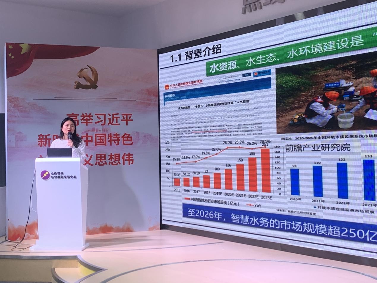 紧接着,微纳光电子学研究院张晗教授团队唐宇轩博士推介了项目《基于新型光电传感器的智慧水务解决方案》,该项目基于自主研发的光电传感材料,开发了高精度水质传感器,实时、准确地获取水质数据,实现从污水排水到污水处理到再生水排放再到再生水利用全过程进行严格的水质监测,为再生水系统正常运营提供保障。该项目包含自主研发的基于氮化镓光电探测器的光学水质传感器以及基于石墨烯电极的电化学水质传感器,能够在大范围量程内精确检测水中污染物含量。同时,本项目运用人工智能技术,实现可编程传感芯片开发、人工智能边缘网关开发以及具有深度学习功能的信息系统应用算法开发,更加精确地进行水质数据获取及水质环境预测。目前,技术已经成功运用在中交一航局深圳市污水提质增效项目、中电建生态环境集团深圳市污水提质增效项目中。