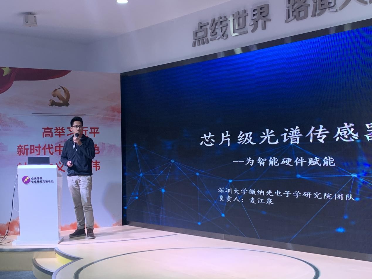 最后,微纳光电子学研究院麦江泉副研究员带来《芯片级光谱传感器》,该团队研发了新型静态傅里叶变换技术,把光谱仪缩小成芯片级大小的传感器,将成本从万元降至百元级别,同时保持了高分辨率与宽光谱范围;且团队研发了深度学习光谱分析算法来替代传统的化学计量法,大幅度提高了应用开发的效率与检测准确度。该传感器体积小、成本低,它将可以嵌入到智能家居和智能手机等硬件中去,满足人们日常生活的物质检测需求,在庞大的消费级应用市场中具有强大的竞争力。