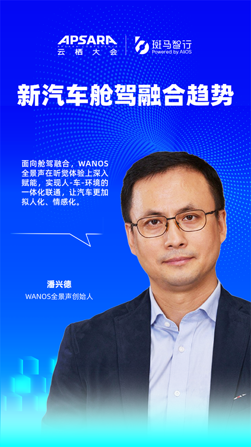在本届云栖大会上,斑马智行举办两大专场共同探讨智能汽车新发展。WANOS全景声科技创始人兼CEO潘兴德博士受邀出席2023云栖大会斑马智行专场并发表主题演讲。