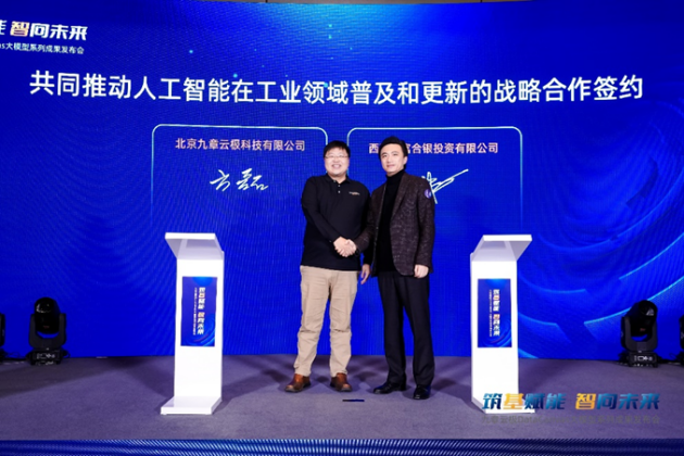 11月21日,在「筑基赋能 智向未来」九章云极DataCanvas大模型系列成果发布会上,九章云极DataCanvas公司与人工智能产业链上下游合作伙伴广东民营投资股份有限公司(以下简称“粤民投”)、西藏赛富合银投资有限公司(以下简称“西藏赛富”)、广州赛富合银资产管理有限公司(以下简称“赛富资管”),以及国内知名自研高端GPU芯片及解决方案提供商,正式签订三大战略合作,提速AI软硬件自主创新、工业领域AI技术规模化应用和国产化智能算力建设,实现公司“算法+算力”一体化服务生态战略进阶!