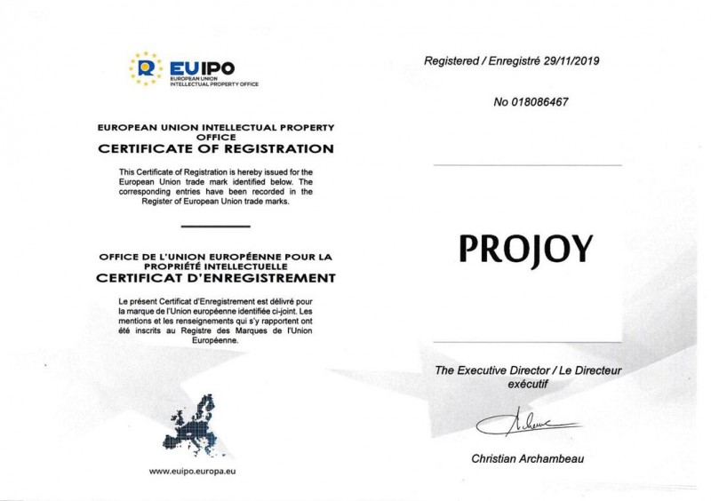 苏州普兆新能源有限公司已经通过ISO 14001-2015-CN、ISO 9001-2015-CN环境管理体系认证,获得PROJOY欧盟商标注册证书等多项商标注册专利证书。