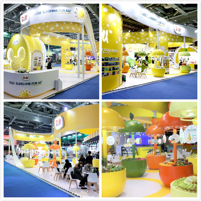 都乐作为进博会展盟理事会成员之一已经连续三年参加进博会,在各具特色的展台展览中,充满阳光味道的“都乐阳光果园”展台非常亮眼。