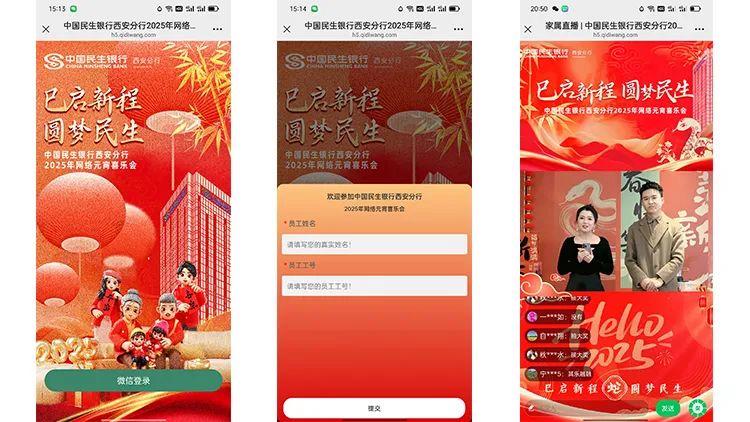 2025年2月10日,《巳启新程 圆梦民生 中国民生银行西安分行2025年网络元宵喜乐会》隆重举办,为全国民生银行员工、家属呈现了一场融合传统文化与现代科技的视听盛宴。本次活动由企迪·会议会务云Saas提供全流程技术支持,通过线上线下联动模式,打破空间壁垒,实现“云端团圆”,活动累计吸引超3000人次参与,线上互动评论数达3.6万次,线下节目与线上狂欢交相辉映,彰显民生银行创新服务与人文关怀的双重魅力。