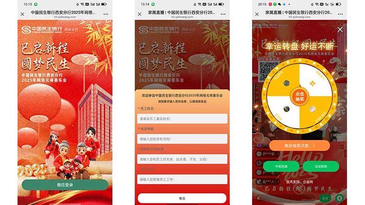 元宵节作为中华民族的重要传统节日,承载着团圆与希望的寓意。本次活动中,民生银行西安分行以“猜灯谜”、“线上大转盘抽奖”、”签到抽奖“等经典环节为纽带,通过线上直播与线下互动结合的形式,让参与者感受到浓厚的节日氛围。